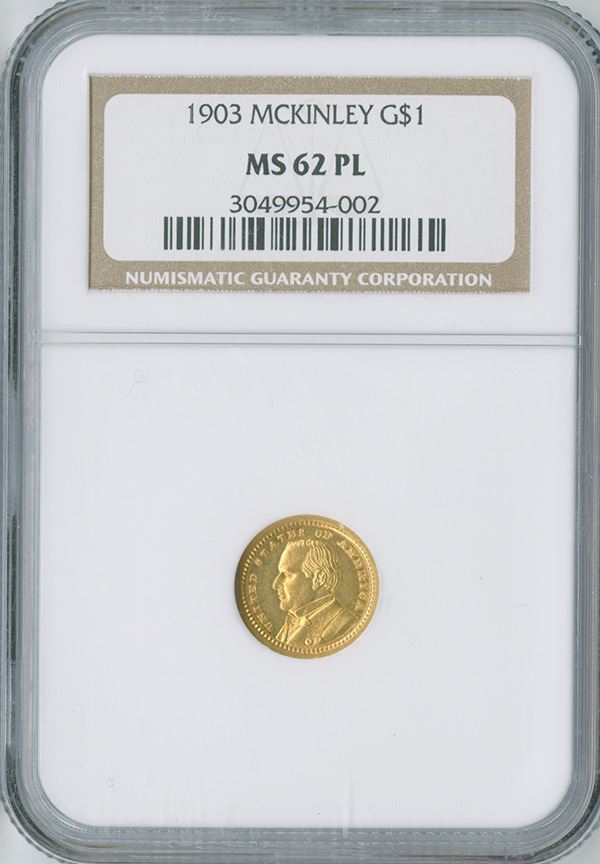 McKinley $1, 1903, gold, NGC graded MS62PL, Slab# 3049954-002
