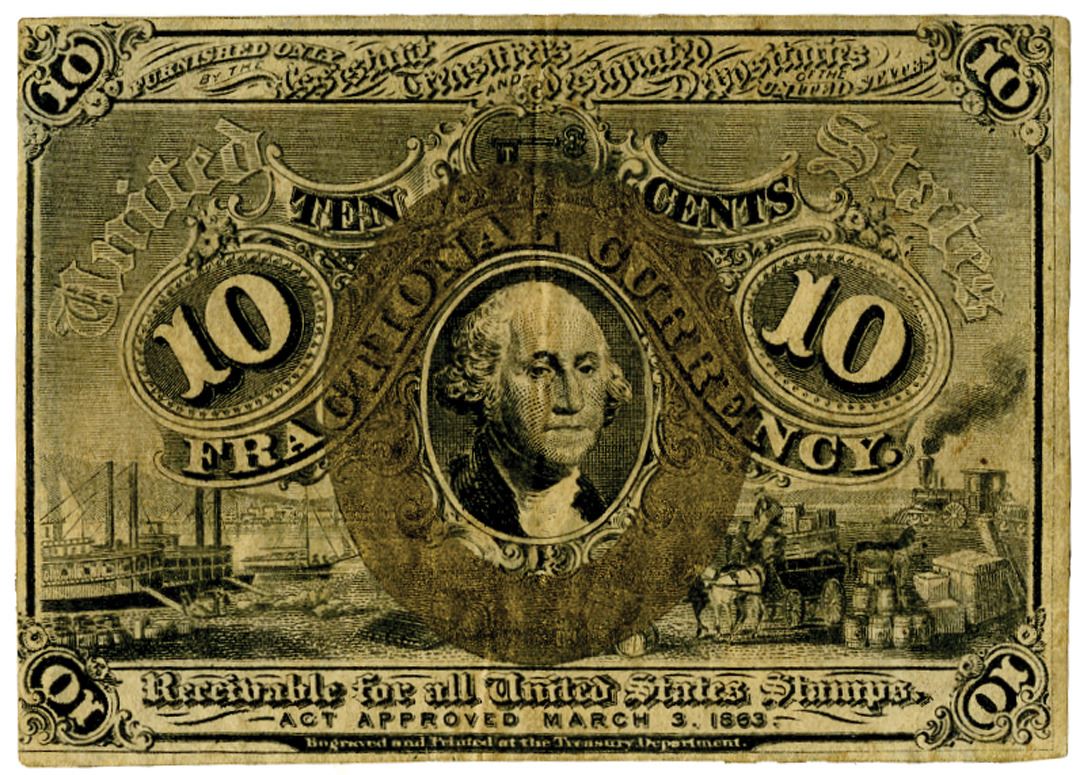 United States Fractional Currency. 10 Cents, Second Issue, Fr.1244, Sp40ecimen on back. Very Rare.