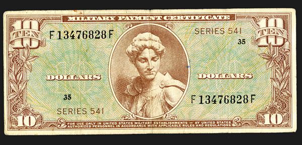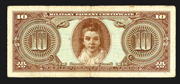 Brown with blue-green underprint. Woman, front, young girl, back. VF or so.