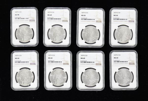 1879-O Morgan Dollar NGC AU58 to MS 60, Group of eight,