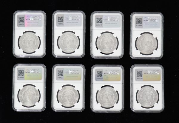 AU 58 (1); MS 60 (7), NGC graded About Uncirculated 58. Shipping charges apply - weight 1.4 lbs.