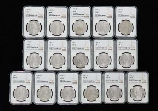 1887 Morgan Dollar NGC MS60 to MS 64, Group of 16,