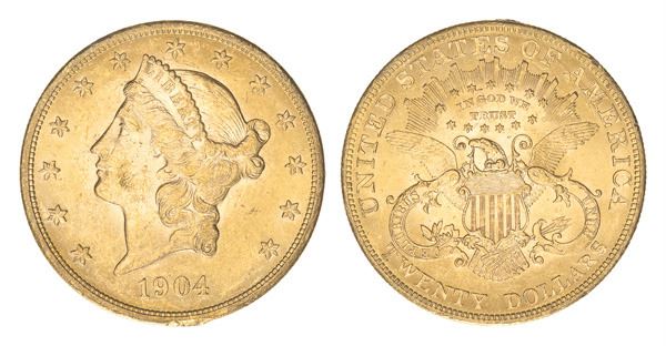1904 Liberty $20 Double Eagle, AU-Uncirculated,