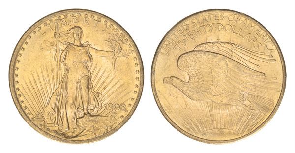 1908 $20 Saint-Gaudens, No Motto, Uncirculated.,