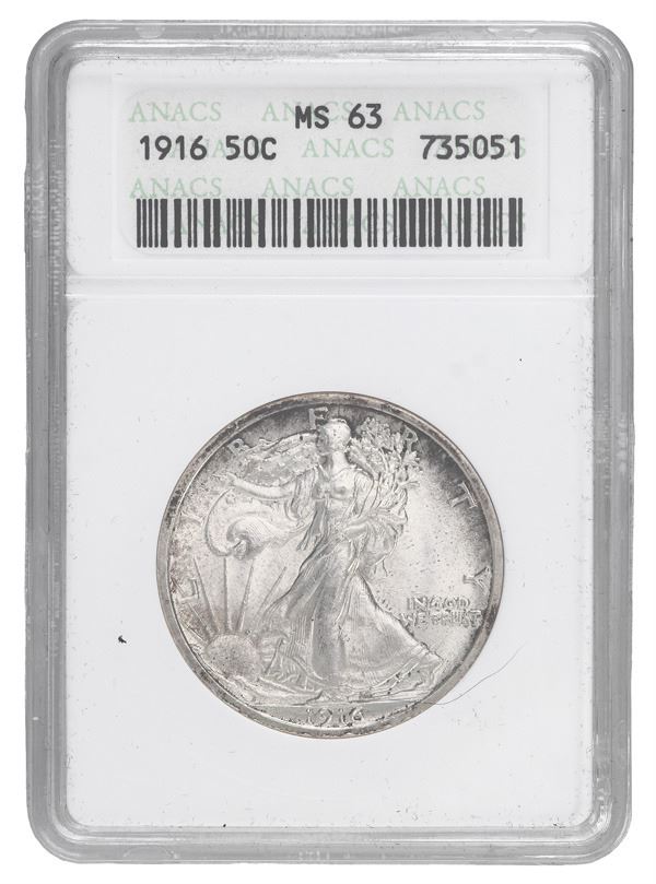 1916 Walking Liberty Half Dollar, ANACS MS 63,