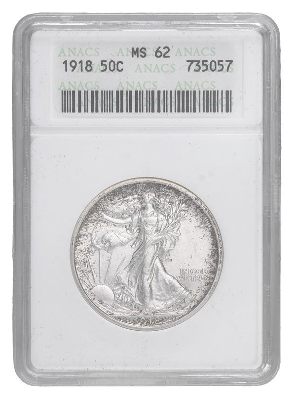 1918 Walking Liberty Half Dollar, ANACS MS 62,