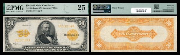 1922, $50 Gold Certificate, PMG Very Fine 25 (Fr-1200),