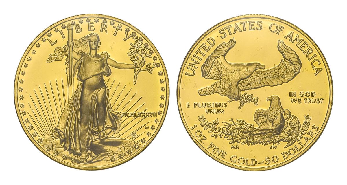 1987-W American Eagle Gold Bullion 1 Ounce, $50