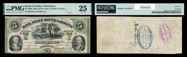 $5 Bank of the State of South Carolina, PMG Very Fine 25,
