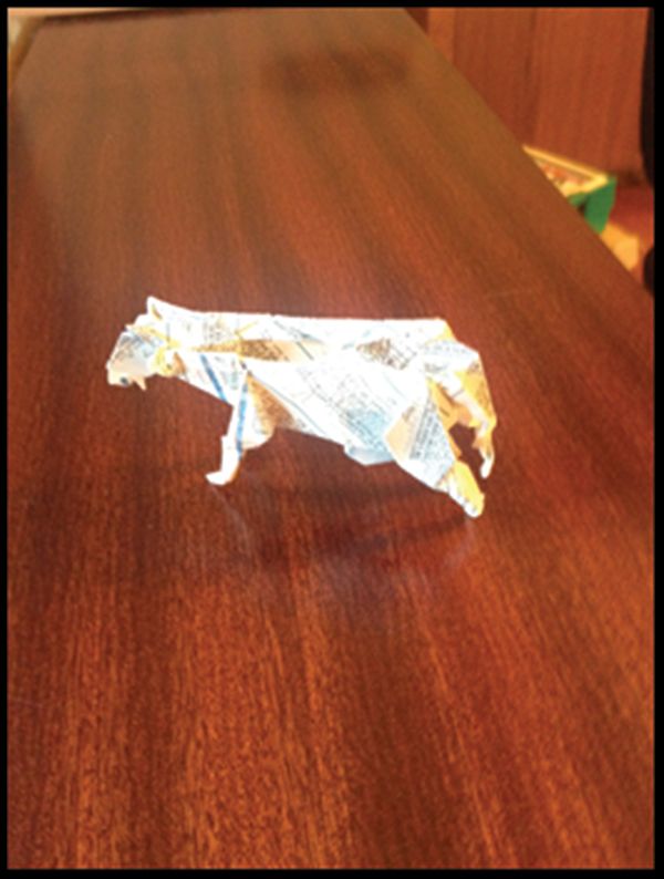 A Cash Cow. Origami made with financial paper, possibly unique. From Museum Am Finance