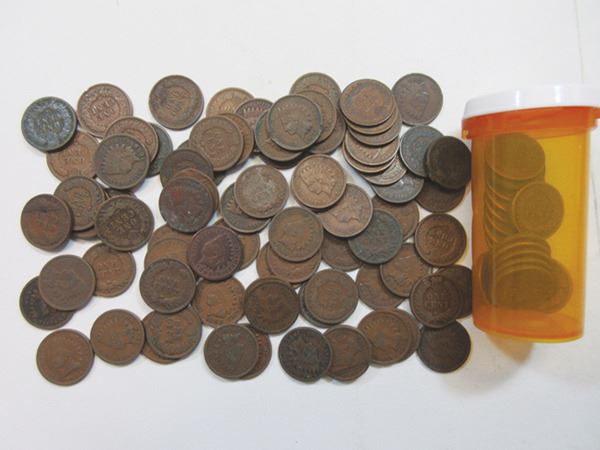 Seventeen mixed date Copper Nickel Cents, most with G-VG details, but many are discolored; eighty or so Indian Cents, about 2/3 Good or better, a few EF or AU, and the rest are culls. Please inspect, sold "As is" No returns accepted.