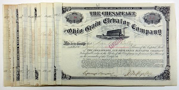 New Jersey. 1883, Lot 18 Stocks, (17 I/C and one U/C), All with grain elevator and plant, VF condition, stubs on left.