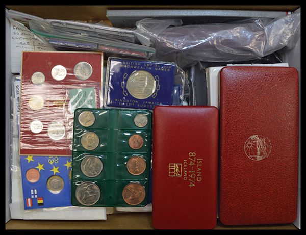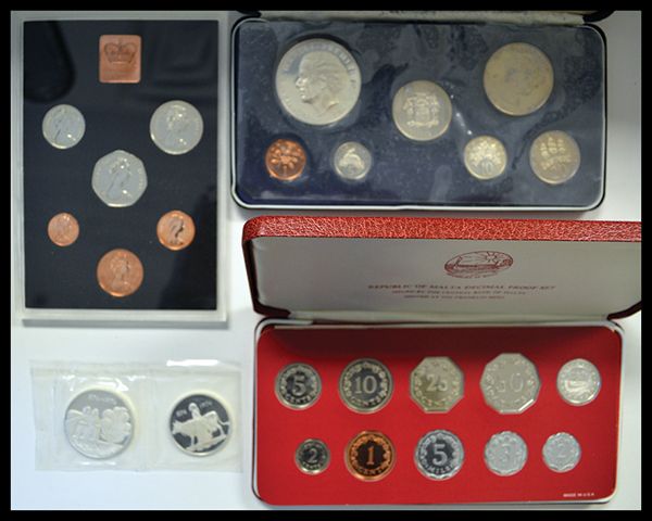 A Wide Assortment of Mostly Proof and Mint Sets from Around the World, 1960s through 1970s. Silver Coins Included. Australia 1986(7) Proof; Belize 1974 Mint(8); Cook Islands 1972 Proof(7); France 1979 FDC(10); Iceland 1974 Proof(2); Jamaica 1972(7) Proof; 1972Malta 1979(10) Proof. Others from Liberia, Germany, Finland, Northern Ireland, Botswana and more. Most are in the original packaging. Must be seen. Sold as is.