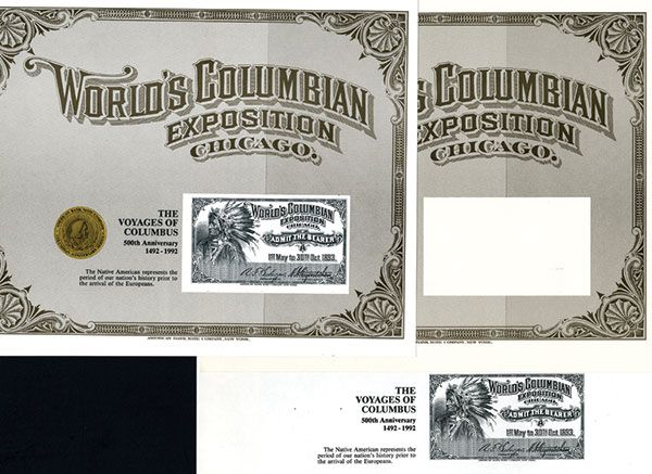 Lot of 3 cards, all are WSCE, Chicago, 1992, Cards with 2 progress proofs, one with litho border area only, one with intaglio black portion only and a complete issued card for comparison, Barr-SO Series 91-96 Unlisted, Mint condition, ABNC.