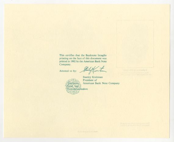 New York, 1992. Lot of 170+ cards, all with Bannister engraving "Columbus in his Study." The back has the ABN attestation authenticating the intaglio printing was done by ABN. All are missing the hologram of Columbus. All are in mint condition as printed. ABNC. (174). Sold "AS IS" no returns accepted.