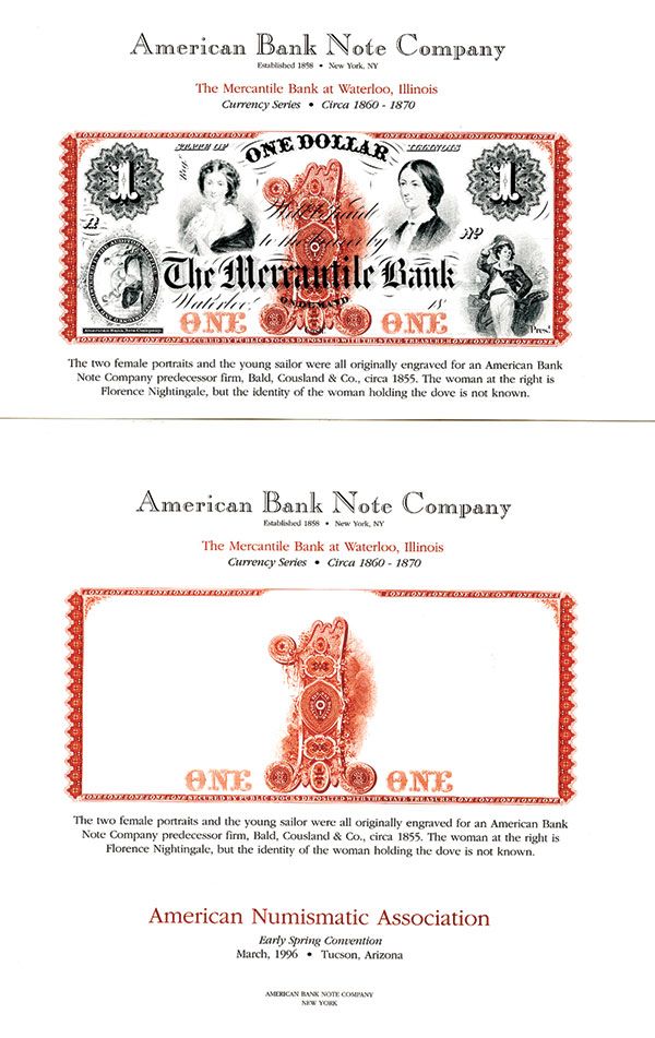 American Numismatic Association March, 1996, Tucson, AZ, $1 Mercantile Bank, Waterloo, IL, Barr- SO/155 Unlisted (2).