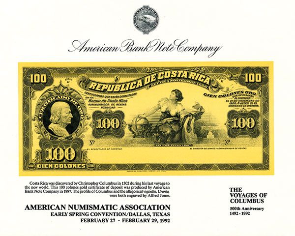 Costa Rica, Lot of 8 duplicate cards, all are 1992 ANA cards, ABNC Endorsement on back. Mint Condition. Beautiful.