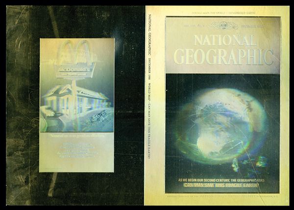 ABNC, Unfolded Proof National Geographic Hologram Cover, "Fragile Earth" With Vintage Holographic McDonalds Ad on Back. December, 1988, Unfolded proof of front cover and back cover with blank back, XF condition. ABNC. Rare in this form.