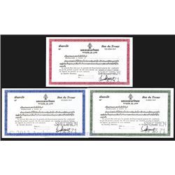 509 - Royaume Du Laos, Bon du Tresor, 1971 Specimen Trio.Archives International Auctions