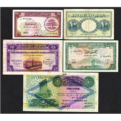 Lebanon. 5, 10 Piastres. P-40, 41, 47. First with tear at right end and light ink coverage in parts of note. Very Fine; Second is Fine with graffiti,