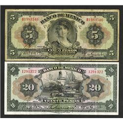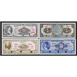 Mexico, Lot of 4 banknotes, Includes 1950, 1 Peso, P-46b, Unlisted variety as a specimen; 1963, 20 Pesos, P-54ks; 1969, 50 Pesos, P-49rs; and, 1967, 1