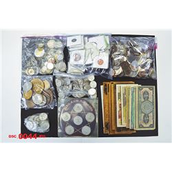 Mixed lot of a few hundred U.S. and foreign coins including approximately $30 in face of 90% U. S . Silver, a few crowns, smalls plus 18 common medals