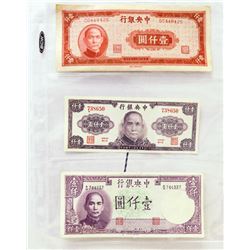 China, Lot of 13 notes, Includes 1935 Issues; 1941 issues, 50 Yuan to 500 Yuan; and, 1942 issues, 50 Yuan, P-479, VG with faults and 100 Yuan, P-480,