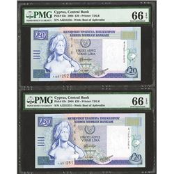 Antigua, E.C.S., Lot of 2 notes, includes ND (1994), $20, P-33a, Issued; and, ND (2000), $50, P-40a, issued, Both are Choice to Gem Uncirculated. Attr