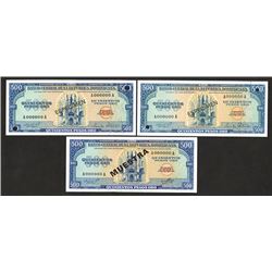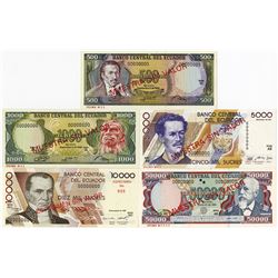 Ecuador, Lot of 5 specimen notes, Includes 1984, 500 Sucres, P-S124s; 1984, 1000 Sucres, P-125as; 1987, 5000 Sucres, P-128as; 1994, 10,000 Sucres, P-1