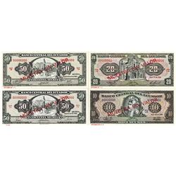 Ecuador, Lot of 4 specimen notes, Includes 1986, 10 Sucres, P-S121s; 1986, 20 Sucres, P-129As; 1982, 50 Sucres, P-122s Unlisted date; and, 1984, 50 S