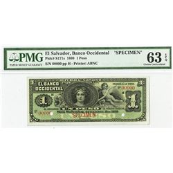 San Salvador, El Salvador, 19xx (1914 typed on back), 100 Pesos, Series D, P-S180s, Specimen banknote, Black on olive and yellow underprint, harbor sc