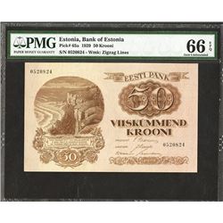Estonia. 50 Krooni. P-65a. Seaside cliffs at left on face, arms at back left. PMG graded Gem Uncirculated 66 EPQ.