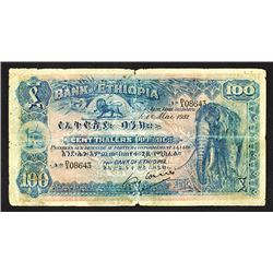 Ethiopia. 100 Thalers. 1.5.1932. P-10. Elephant at right. Scarce and popular large format note from the first date of the type. Very Good, with light