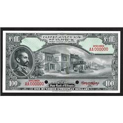 Ethiopia. $100, P16s2, black on green, no planchets, Haile Selassie, former palace, No.AA 000000, Gem Uncirculated, two small punch cancels.
