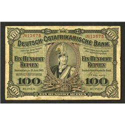 German East Africa, 1905, 100 Rupien, P-4, Issued banknote, Black on green and m/c underprint with portrait of Kaiser Wilhelm II on face, back m/c, S/