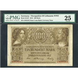 German occupied Lithuania. 100 Mark. P- R133. Female and male portraits at top corners. Bilingual back text. PMG graded Very Fine 25.