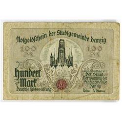 Danzig, 100 Mark, P-13, Fine to Choice Fine, S/N 087227, Building at center.