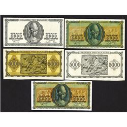 Greece. 5000 Drachmai. P-122 for type. Face and back black color uniface prints, Full color face and back (slight edge tear at top), each uniface; Two