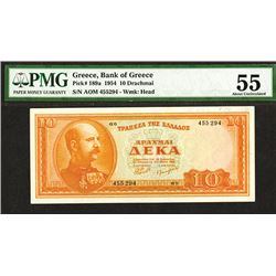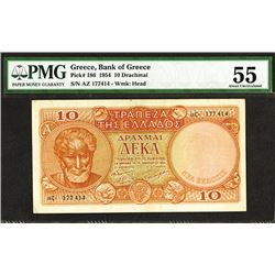 Greece. 10 Drachmai. P-189a. George I at left end, arms at center. PMG graded About Uncirculated 55 pencil notations in top right margin.