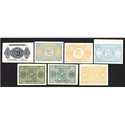 Honduras. 1, 2, 5, 10, 50, 100 Pesos. P-S162-S165B. ABNC File india paper proofs in black of each face, plus one of the back, each mounted on tightly