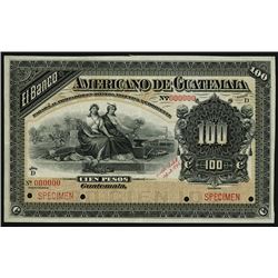 Guatemala. 1895. 100 Pesos. Series D. P-S114s. Specimen with POC's. Allegorical women "Agriculture" and "Commerce" on front....