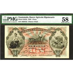 Guatemala. 1 Peso. P-S101a, b. 20.3.1900, 30.6.1920 (last date of the type).Female seated at left, milk maids and cow at right, female seated in lion