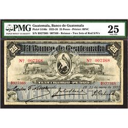 Guatemala, 1925, 25 Pesos, P-S146c, Issued banknote, Black on light blue underprint, Locomotives on left and right, Guatemala Arms in middle, 2 sets o