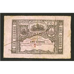 Haiti, 1 Gourde, P-41, Black on pink paper, S/N 89002, Serie O2, red overprint on back, perforated on 3 sides, VF to Choice VF. W&S.