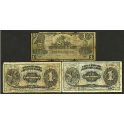 Haiti. 1 Gourde. P-120a, 150a (2). Banana plant on last two. VG to Choice VG with stains and minor paper issues, 3 pieces.
