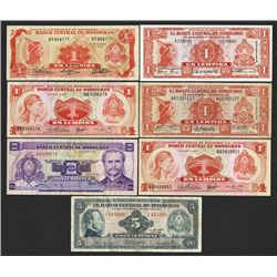 Honduras. Lot of 7 pieces, various dates, all are 1, 5 Lempiras. Lempira on most. Fine to CU. 7 pieces.