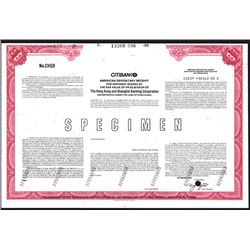 Hong Kong, ND (ca.1960-70's), Odd Shares, Specimen American Depositary Receipt, black with red border, Issued by Citibank in the U.S., Specimen ...