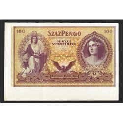 Hungary, 100 Pengo, P-115a, Remainder without serial numbers, printed on both sides, large excess margins on bottom and left, Uncirculated to CU. Attr