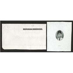 Indonesia, Lot of 2 proof items, both are from the 1948 essay issue by Security BNC. Includes portrait of Sukarno and also a proof of the title used o