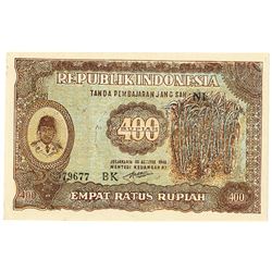 Indonesia, 400 Rupiah, P-35a, Issued, Choice AU to Uncirculated. Scarce in High grade.
